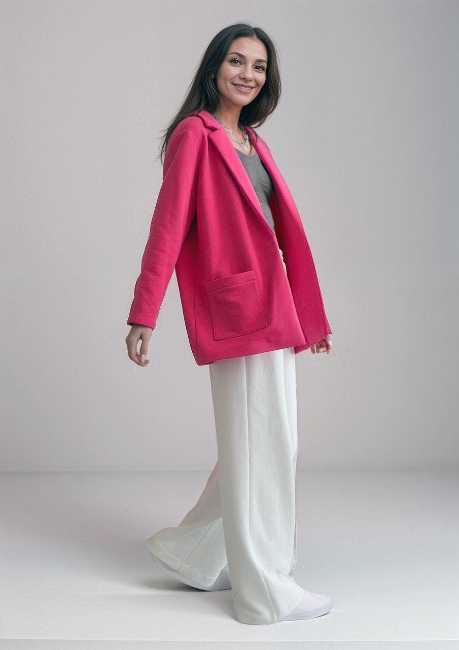 Recommended materials: Dense suiting fabrics or faux leather without elastane. Stretch fabrics are not suitable.