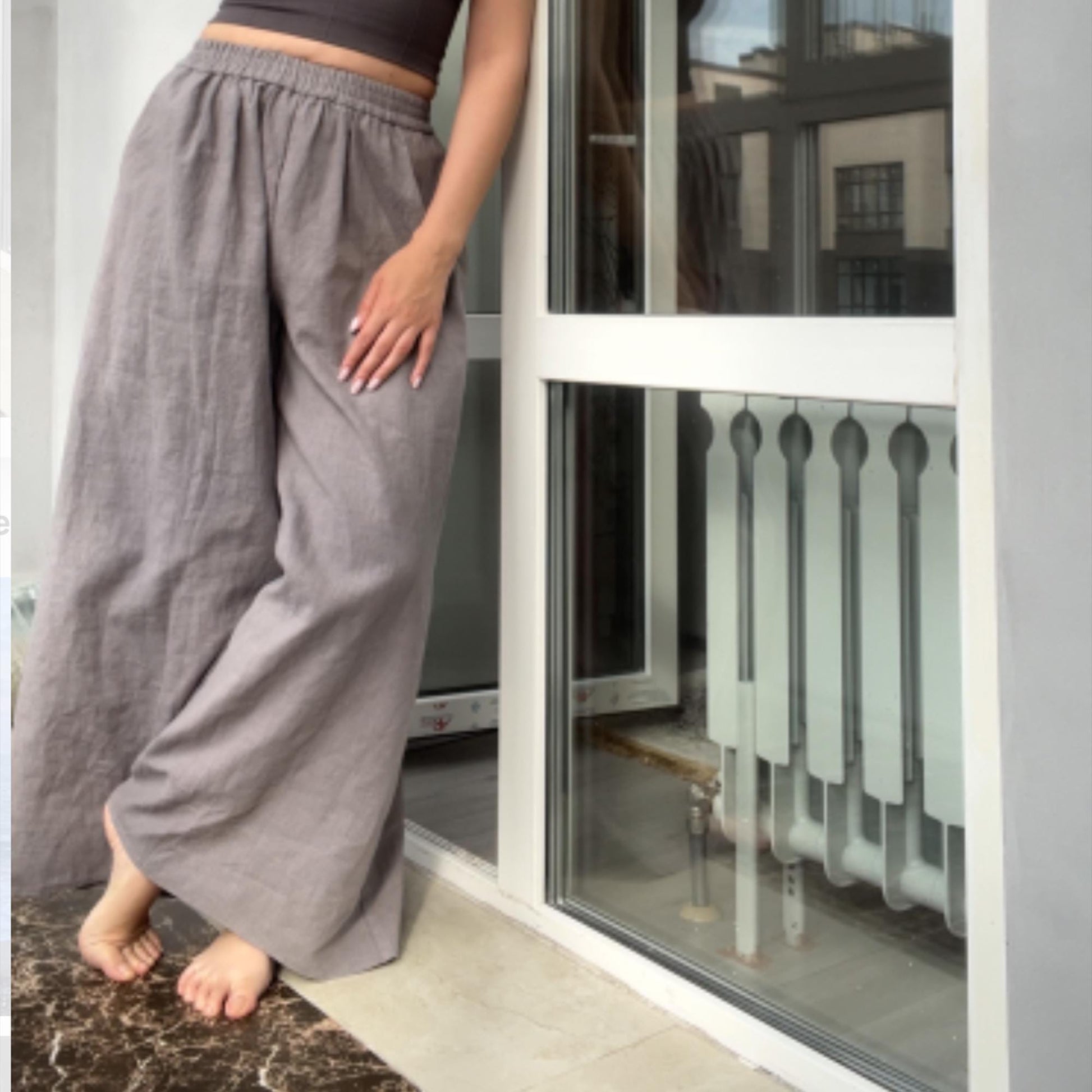 ✨ Recommended materials: Medium-density dress fabrics, thin, flowing, and well-draped. Materials can be natural (silk, staple), artificial (viscose), mixed (dress silk, stretch satin), or synthetic (polyester, crepe satin). Fabric density 175–250 g/m². Sample trousers are sewn from 100% viscose, 240 g/m².