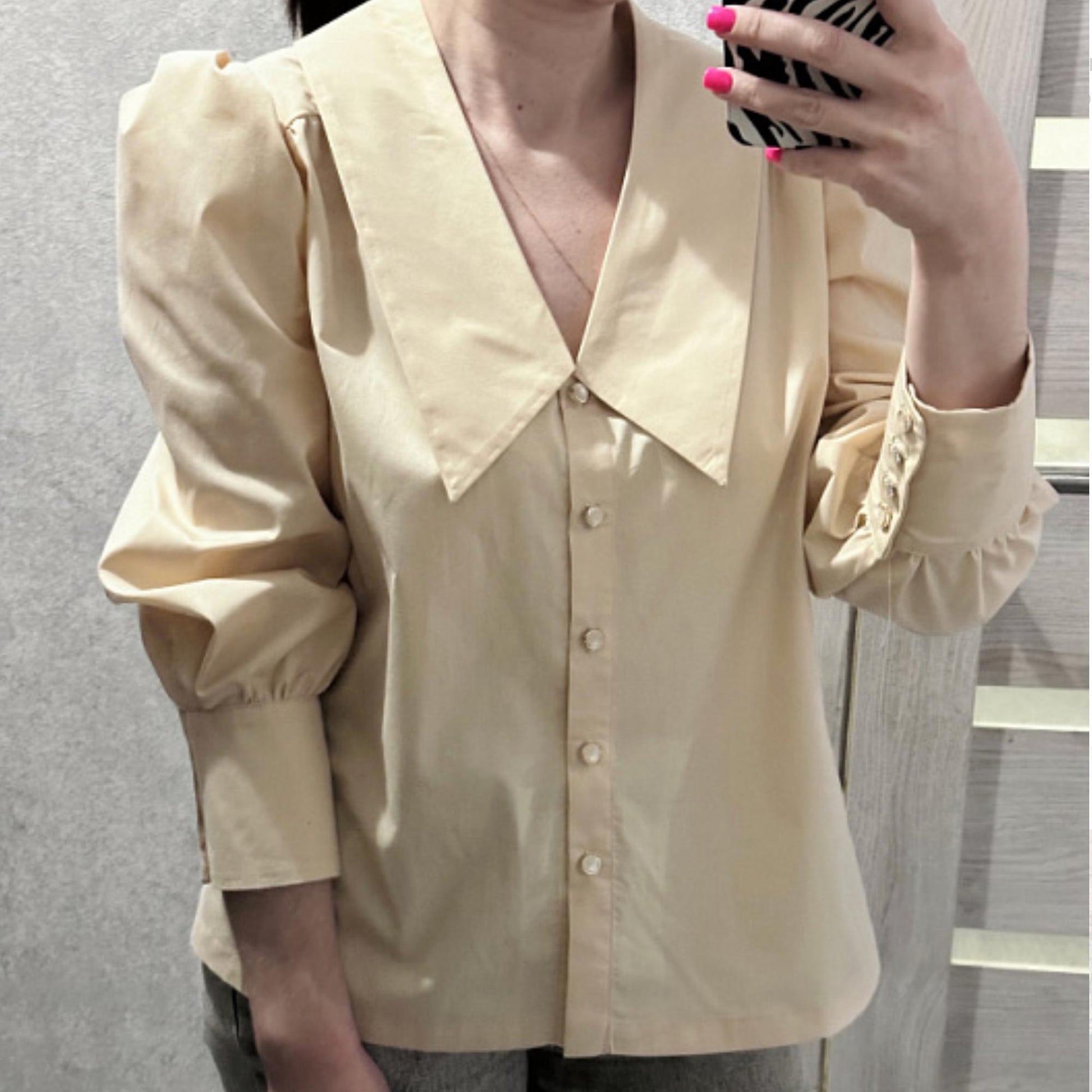 Digital PDF pattern for a stylish summer top featuring a collar, puffed sleeves, peplum hem, and tie at the waist. Perfect for casual or dressy looks and easy to sew for beginner and intermediate sewers.